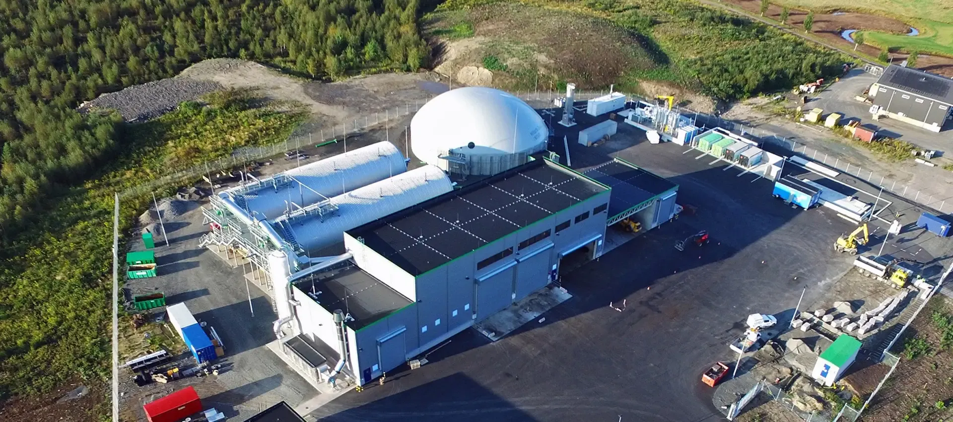 Die 2020 fertiggestellte Biogasanlage mit Kompogas®-Trockenvergärung und nachgeschalteter Gasaufbereitung verarbeitet regionale Bioabfälle und versorgt Busse und Müllfahrzeuge in der Stadt Jönköping mit aufbereitetem Biogas in Form von Bio-CNG. Der dabei entstehende organische Dünger wird in der lokalen Landwirtschaft eingesetzt und sorgt so für eine praktische Kreislaufwirtschaft.