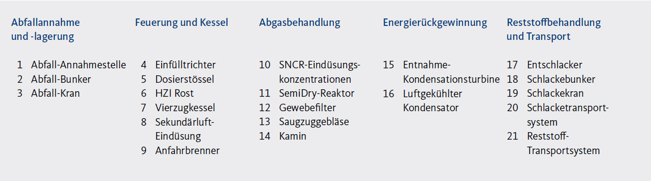 Die festen Reststoffe aus Siedlungs- und Industrieabfällen werden von Lkws in einer geschlossenen Abfall-Annahmestelle in die Bunker gekippt. Der Abfall-Bunker dient als Zwischenlager für mehr als 4 Tage autonomen Betrieb sowie zur gründlichen Mischung des heterogenen Brennstoffs. Der Abfall-Kran versorgt zwei unabhängige Anlagen im Handbetrieb, im halbautomatischen oder automatischen Betrieb. Der zugeführte Abfall wird auf den bewährten Inova Rost gedrückt und verbrennt dort vollständig, die Restschlacke fällt in den Kettenentschlacker. Die voll integrierte Leistungsregelung erlaubt schnelle Anpassung der Verbrennungsbedingungen an die geänderte Zusammensetzung des Abfalls und damit einen effizienten und stabilen Betrieb.
