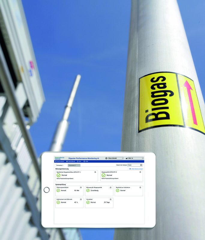Eine automatische Früherkennung von Störungen der Prozessbiologie im Fermenter ist mithilfe einer künstlichen Intelligenz in wenigen Sekunden möglich. Im Falle einer Störung löst das System einen Alarm aus und ermöglicht dadurch dem Betriebspersonal ein schnellstmögliches Eingreifen. Das System verwendet dabei online verfügbare Anlagendaten der vorhandenen Messungen. Damit ist das System in vielen unterschiedlichen Anlagentypen einsetzbar.