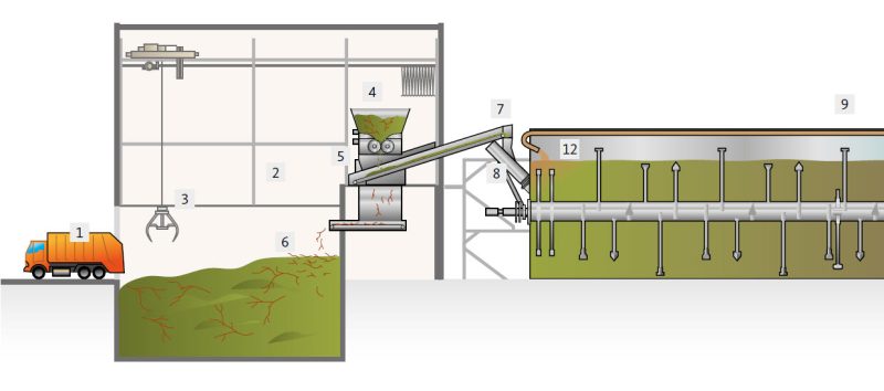 in eine Abwasseraufbereitungsanlage geleitet oder das alternative Konzept der Teilstromvergärung eingesetzt. Bei der presswasserfreien Teilstromvergärung gelangt ausschliesslich der energiereiche Teil des Bioabfalls in den Fermenter.