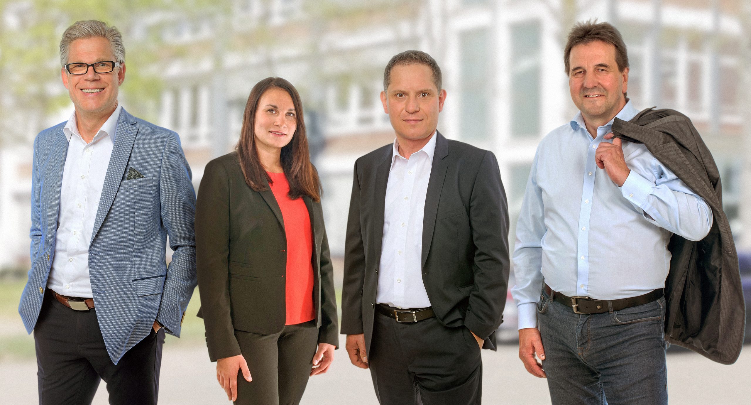Two Kanadevia Inova Group companies combine their strengths to form the new Kanadevia Inova Deutschland GmbH (Kanadevia Inova Germany). On the picture from left to right: Carsten Stölting, Managing Director, Kanadevia Inova Germany; Nicole Klose, Commercial Manager, Kanadevia Inova Germany; Michael Gerth, Site Manager Cologne; and Thomas ter Horst, Site Manager Braschwitz.
