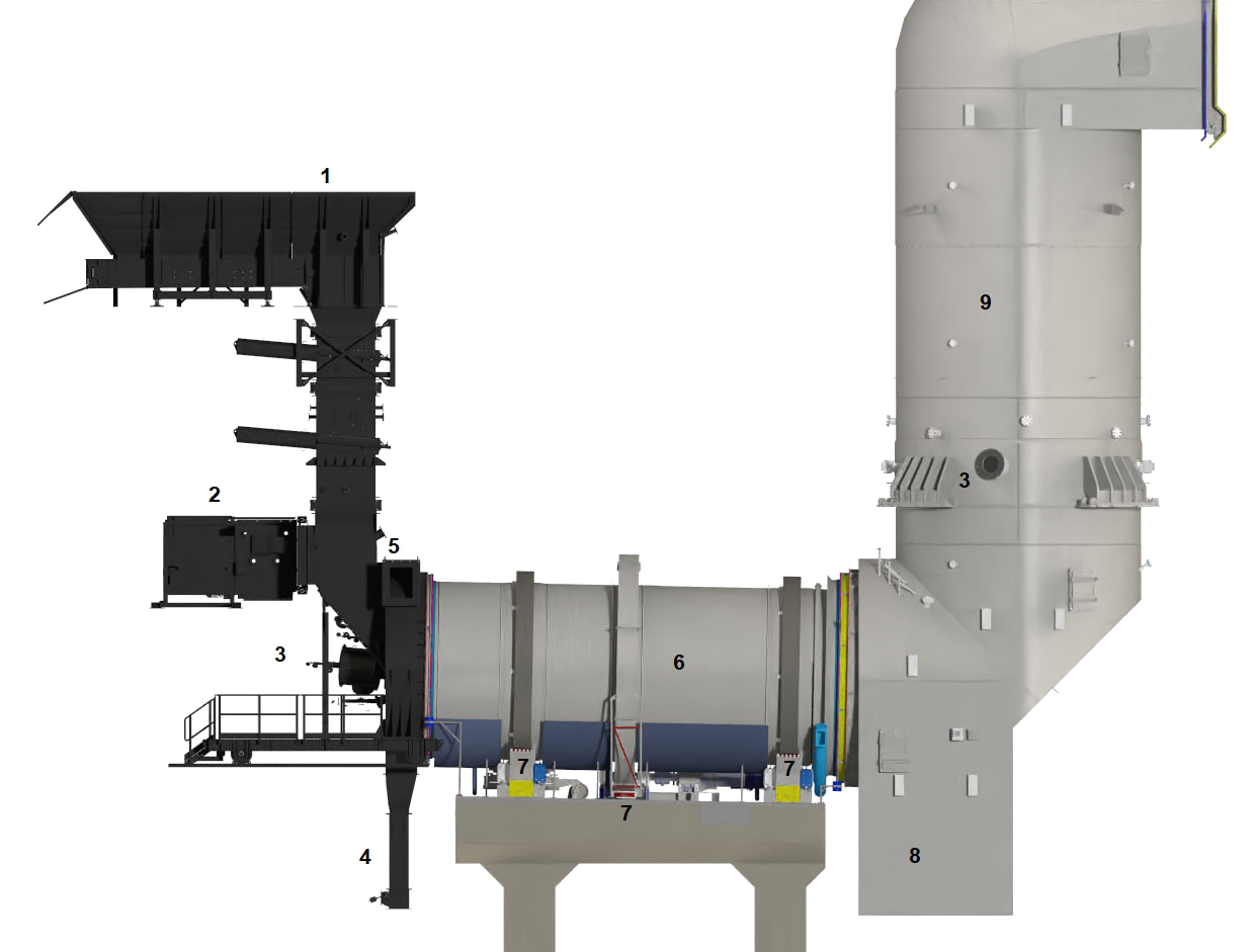Due to the required high-temperature incineration, hazardous waste treatment plants mainly operate with rotary kilns as combustion systems. These rotary kilns have a length of up to 15 meters, an outer diameter of as much as 5.5 meters and are specially designed for high temperatures with their fire-resistant coating. The secondary combustion chamber (SCC), which is sub-connected to the rotary kiln, takes on the task of completely burning out the exhaust gases of the rotary kiln (residual organic substances, crushed solid particles, CO strands) and ensuring the legally required two-second residence time at 1.100 °C. Solid wastes are placed in the front of the rotary tube, and liquid and gas waste can be inserted into the rotary kiln or at the beginning of the secondary combustion chamber. In all cases, complete burnout is ensured. We support you, no matter if it is maintenance, modification, or renewal of existing assets.