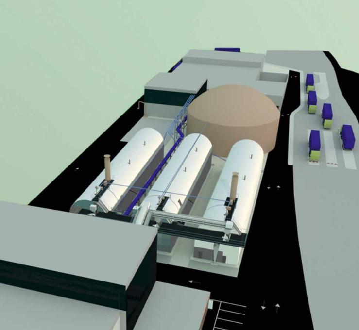 As part of the new energy policy, Kanadevia Inova is building a complete turnkey Kompogas® biogas plant (without gas upgrading) in Högbytorp, around 40 kilometers northwest of Stockholm. The owner and subsequent operator of the plant is E.ON Biofor Sverige. With an annual throughput capacity of 83,000 tonnes of organic waste, the facility will generate around 6.8 million Nm3/a of biomethane, which will be fed into the local gas grid. This is equivalent to savings of around 7 million liters of heating oil and diesel. To achieve its environmental targets, the Swedish government has budgeted a record SEK 12.9 billion (EUR 1.33 billion) for investment in climate protection, fossil-free transport, and renewable energy over the period from 2017 to 2020. E.ON Biofor Sverige has likewise been granted SEK 75 million (EUR 7.71 million) in subsidies for the overall project in Högbytorp.